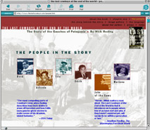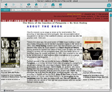 Description: Web site for The Last Cowboys at the End of the World by Nick Reding. The book tells of Reding's experience in Chilean Patagonia, and the site design was conceptualized by LD Beghtol and executed in close collaboration with the author in late 2001. The site contains book excerpts, stories, Reding's photographs, and book reviews and other press.
