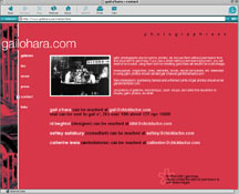 Description: Web site for London-based photographer Gail O'Hara. Site design conceptualized by LD Beghtol and executed in close collaboration with Gail O' in mid-2002 with new images added through the present. Site contains image galleries, news, and press links.